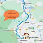 Daire Laxou şehrinin merkezine 20 dakikalık yürüme mesafesinde yer almaktadır. Vittel daireye 56 km, Église Saint-Sébastien ise 2,1 km uzaklıktadır. La Verdine, Nem a Dom restoranları 600 metre uzaklıktadır. Cathédrale Notre-Dame-de-l'Annonciation'dan kısa bir sürüş mesafesindedir.